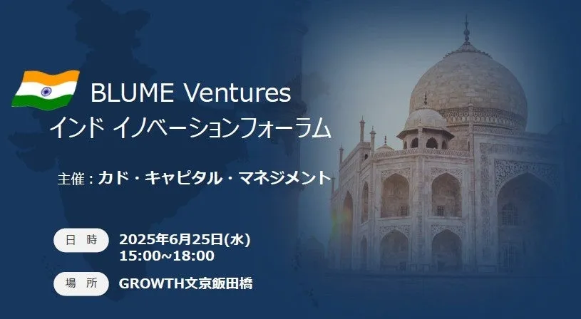 2025年6月25日、独立系金融機関のカド・キャピタル・マネジメントは「BLUME Ventures インド イノベーションフォーラム」を開催しました。今回のセミナーには、インドのベンチャーキャピタルであるBLUME Venturesのパートナーであるアシッシュ・ファファディア氏と、元ユニ・チャーム常務執行役員である木村幸広氏を招いて、インド市場の未来について熱い議論が繰り広げられました。