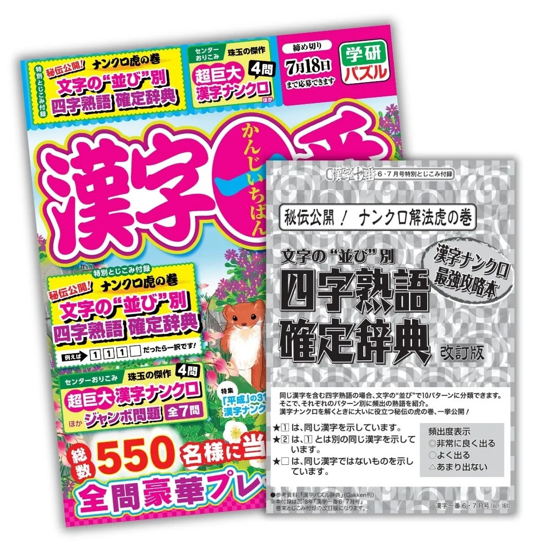 2025年4月17日、株式会社Gakkenから『漢字一番6月号』が発売されます。この号は、漢字ナンクロ愛好者にとっての必携アイテムです。特に注目すべきは、特別付録としてついてくる「四字熟語確定辞典」です。この付録は、文字の並びによって四字熟語を確定できる画期的な辞典で、ナンクロ解法に役立ちます。