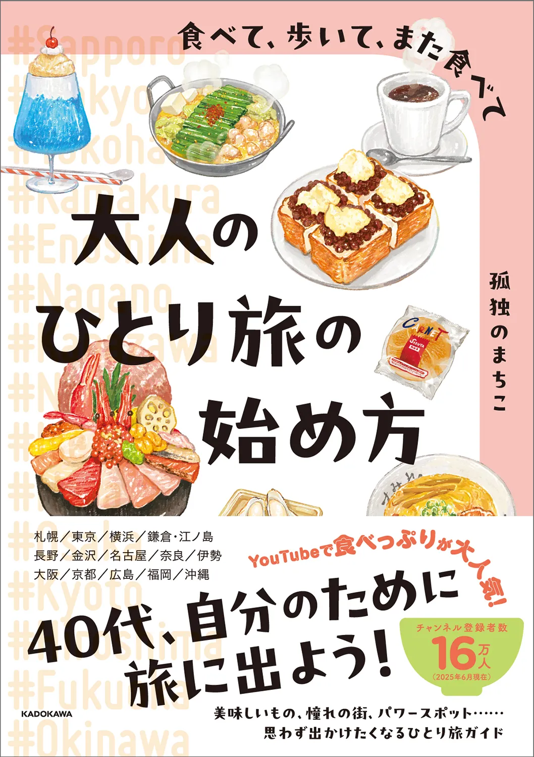 昨今、YouTubeで注目を集めている「孤独のまちこ」がついに初の書籍を発表する。彼女は40代でひとり旅を始めた旅好きの会社員で、チャンネル登録者は16万人を超える。彼女の魅力は、等身大の旅を通じたリアルな体験と食べっぷりにある。