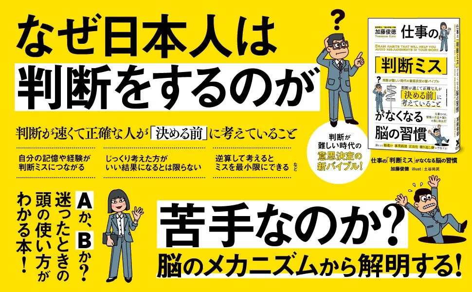 本書は、定価1,738円(税込)で、様々なオンラインストアで入手可能。自分自身の判断力を見直し、改善したいと考えているビジネスパーソンにとって、必見の一冊である。加藤氏の知識と経験が詰まったこの書籍を通じて、人々がより良い判断を行える手助けになることを期待している。