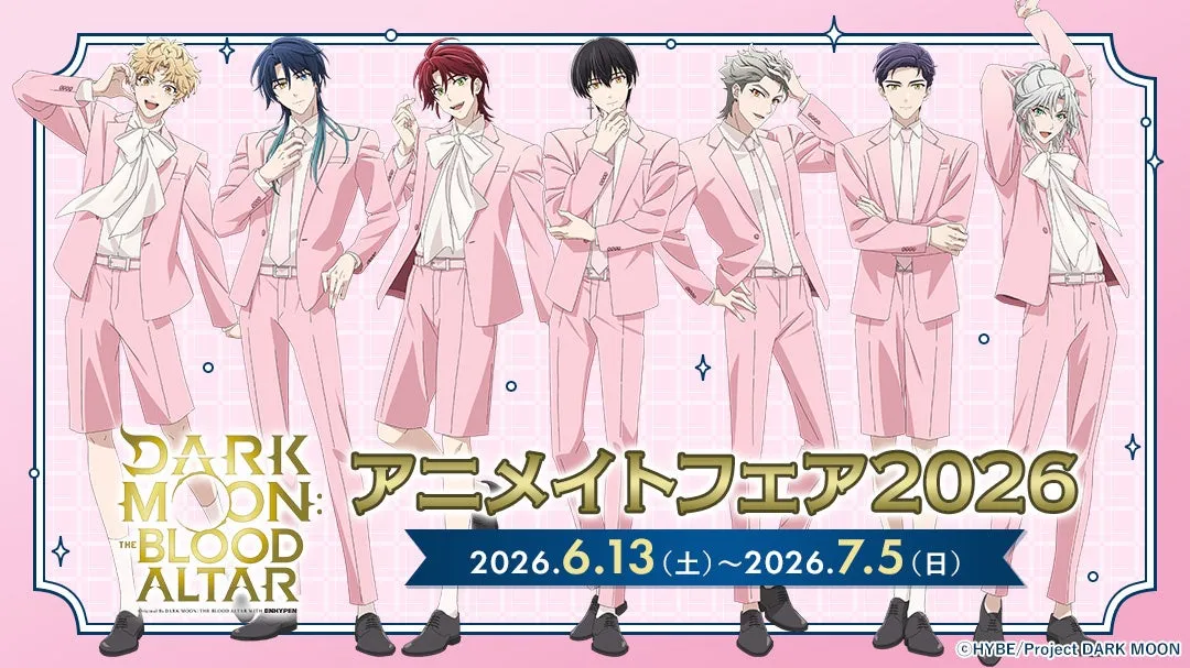 この新商品の発売を記念して、「アニメ『DARK MOON: THE BLOOD ALTAR』アニメイトフェア2026」が開催されます。フェアでは、特定の店舗や通販サイトにおいて関連商品を購入することで特典がもらえます。