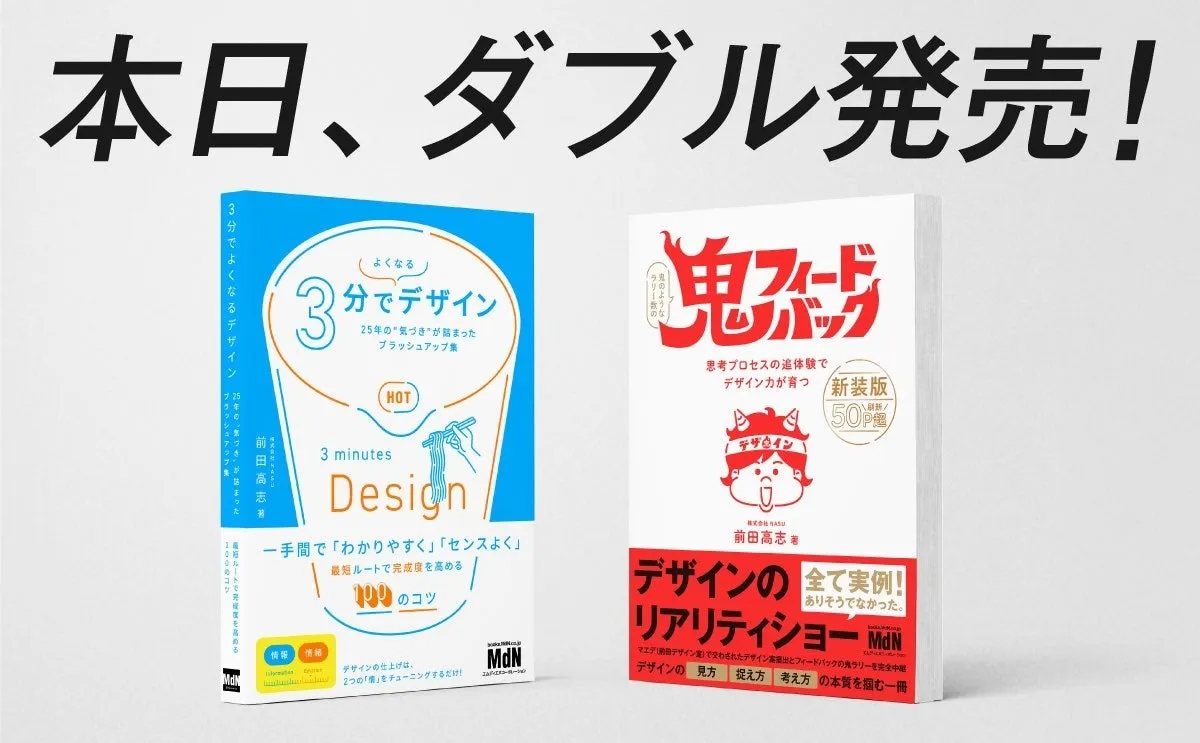 大阪を拠点とする株式会社NASUの代表取締役、前田高志氏の新刊が6月20日にリリースされました。今回の出版物は、『3分でよくなるデザイン25年の“気づき”が詰まったブラッシュアップ集』と『鬼フィードバック新装版 思考プロセスの追体験でデザイン力が育つ』の2冊。どちらもデザイナーやディレクターにとって必見の内容です。