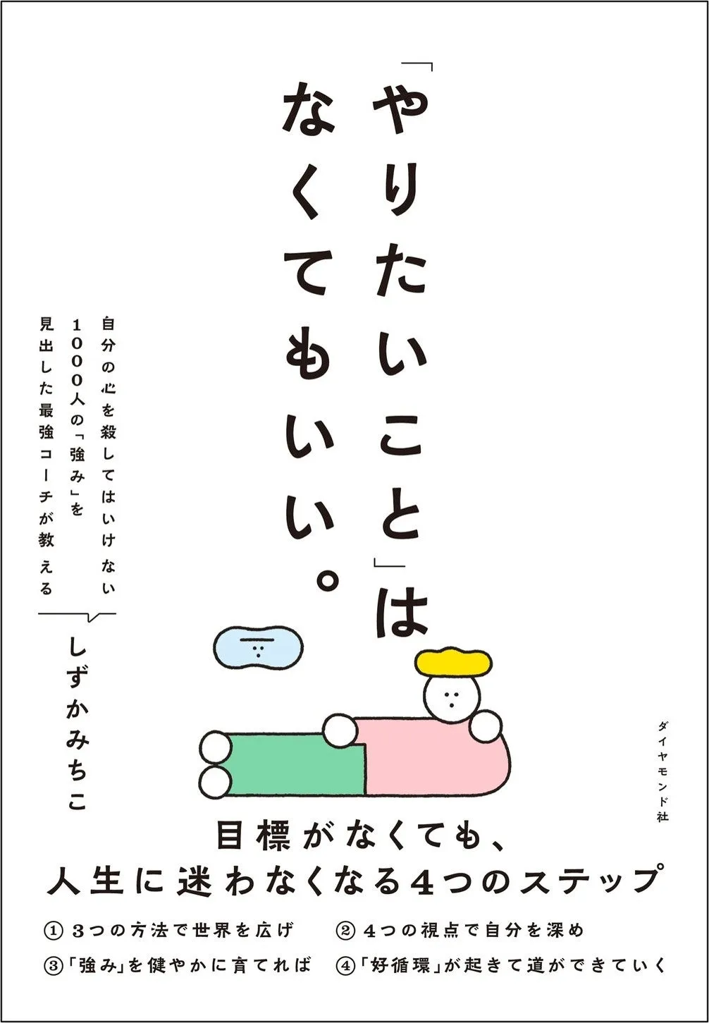 7月2日、ダイヤモンド社からしずかみちこ氏の著書『「やりたいこと」はなくてもいい。』が待望のリリースを迎えました。この本は、自分の「やりたいこと」が見つからずに悩んでいる人に向けて、新しい生き方のヒントを提供する一冊です。