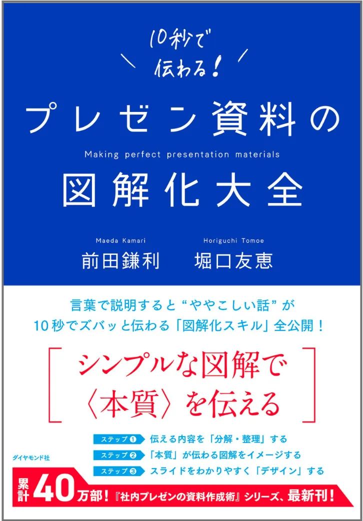 2025年2月19日、著者前田鎌利と堀口友恵の最新作『プレゼン資料の図解化大全』が出版されました。この本は累計40万部突破の『社内プレゼンの資料作成術』シリーズの続編で、特に図解化スキルに焦点を当てています。