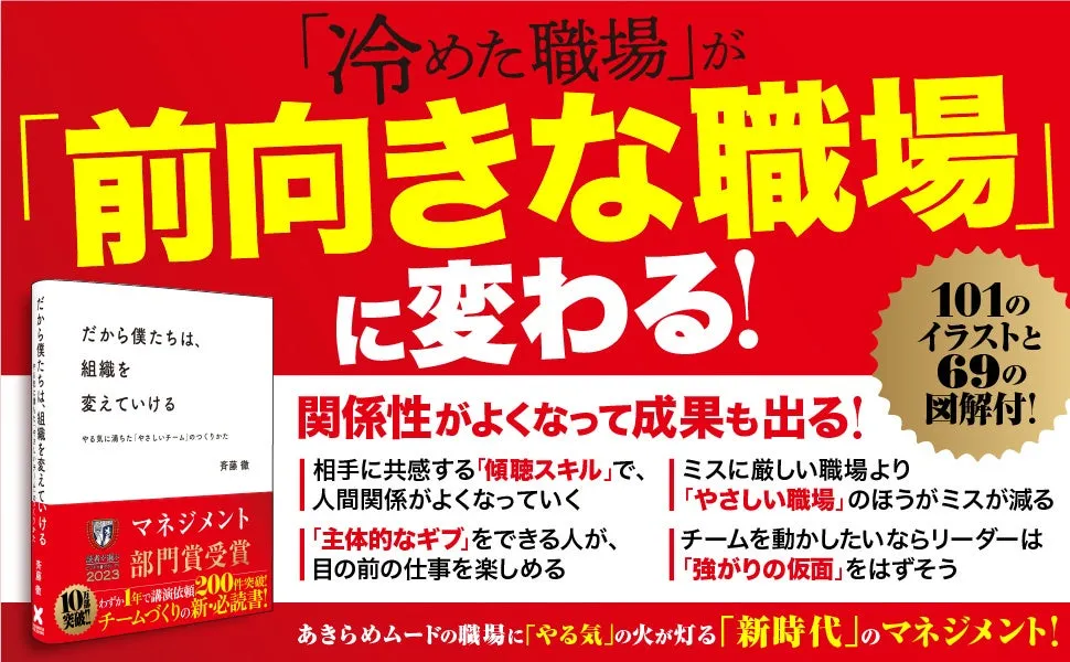 現代の働き方に対する違和感を抱くリーダーや職場のメンバーに向けて、著者は新しい組織を構築するための具体的なメソッドを提案しています。著者の斉藤徹氏は、「心理的安全性」と「内発的動機づけ」を中心に、やる気に溢れる「やさしいチーム」を作り上げるための過程を具体的に解説。多くの人々が求める変革の道筋をここに示します。