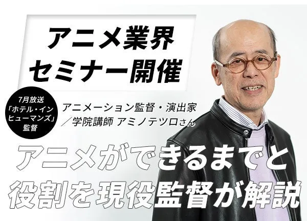 2025年の夏に新たなアニメ『ホテル・インヒューマンズ』が放送予定ですが、その監督であるアミノテツロさんが、2025年3月30日(日)にアニメ業界セミナーを開催します。このセミナーはアニメーション制作に興味のある高校生や大学生、そして再進学を考えている方々に向けて行われます。