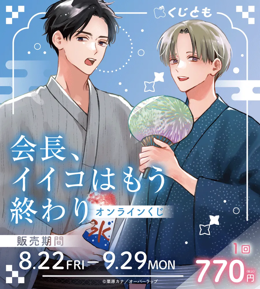 株式会社ブリッジが手掛けるオンラインくじサービス「くじとも」が、栗原カナ先生の青春BLリキューレコミックス『会長、イイコはもう終わり』のオリジナルグッズを2025年8月22日より販売すると発表しました。このグッズは、作品に登場するキャラクターをモチーフにした多彩なアイテムが揃い、ファンにはたまらない内容となっています。