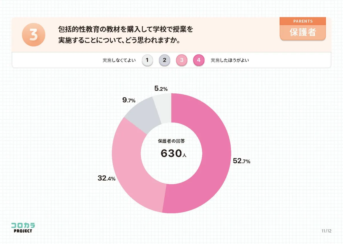 特に、生徒からは性に関するオープンな議論が行える環境が求められており、親や教員もその重要性を理解している様子がうかがえます。しかし一方で、実施が不十分と感じる回答者も多く、教育現場での教育体制の改善が急務であることが浮き彫りとなりました。