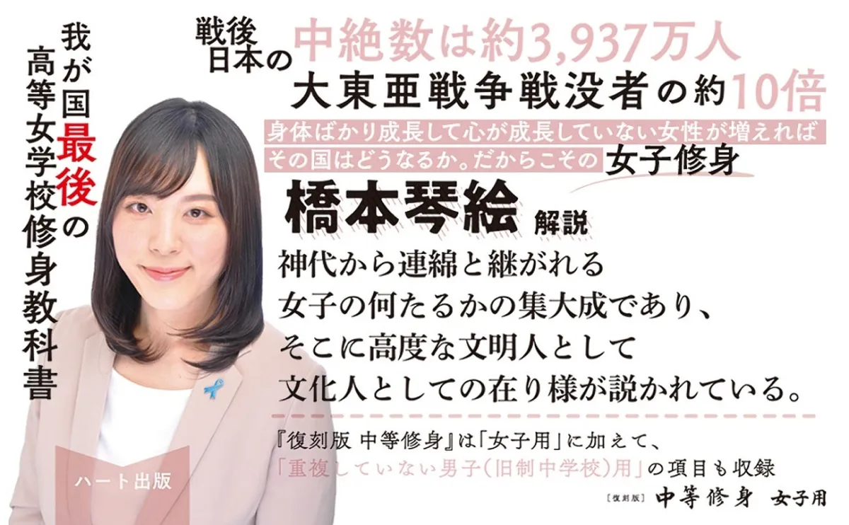『中等修身 女子用』は、272ページにわたり女子に必要な教えが詰まった一冊。『復刻版』として再登場し、著者は文部省、解説には六児の母である橋本琴絵氏が寄稿しています。2023年9月11日にハート出版から発売されており、税抜き1800円の価格で購入可能です。