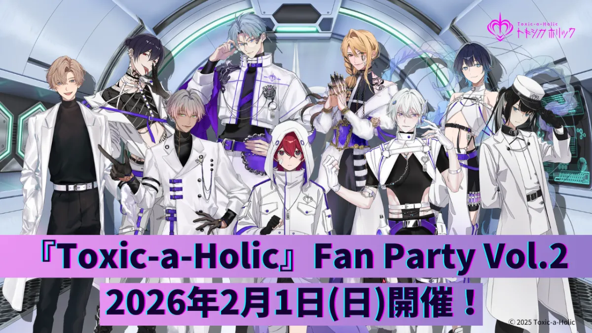 2026年2月1日、東京都の大手町三井ホールにて、ファン待望のリアルイベント『Toxic-a-Holic』Fan Party Vol.2が開催されることが決定しました。本イベントは、アース・スター エンターテイメントとKADOKAWAが手がける人気プロジェクト『Toxic-a-Holic』のキャストが勢ぞろいする特別な機会です。参加するキャストは、徳留慎乃佑、古川慎、土岐隼一、坂泰斗、志麻、堀江瞬、白井悠介、木村良平、そしてやみえんの豪華メンバーです。