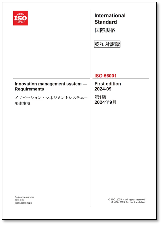2025年4月15日、一般財団法人日本規格協会は「ISO 56001:2024イノベーションマネジメントシステム-要求事項」の英・日対訳版を発行しました。この新しい国際規格は、企業がイノベーションを促進するための具体的な手順や要件を明確に示すものです。
