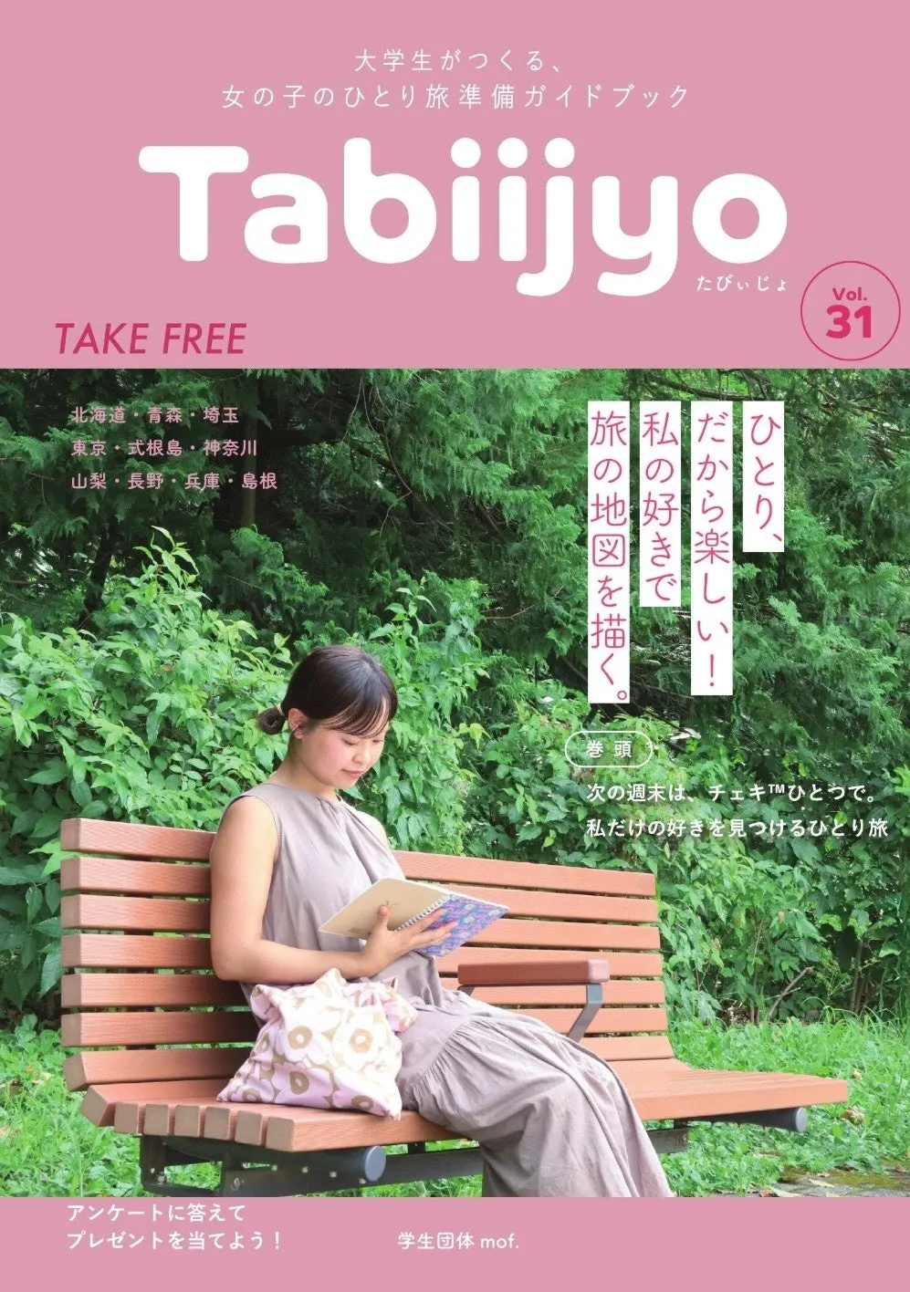 学生団体mof.が、2025年10月1日にフリーペーパー「たびぃじょvol.31」をリリースしました。この号のテーマは「ひとり、だから楽しい!私の好きで旅の地図を描く。」です。ひとり旅の魅力を探求し、個々の楽しみ方や経験をシェアすることで、読者に新たな旅のインスピレーションを提供しています。