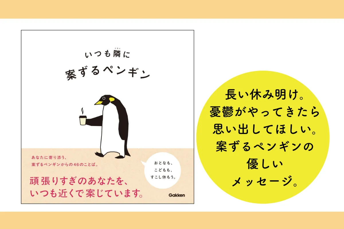 長い夏休みが終わり、学校や仕事が始まる9月は多くの人にとって気持ちが沈みがちな時期です。「行きたくない」「再び始まることがしんどい」と感じるのは、大人でも子どもでも共通の思いです。無意識にプレッシャーを感じやすいこの時期に、案ずるペンギンの優しさ溢れるメッセージが心を和ませてくれます。
