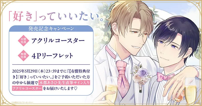株式会社TORICOが運営するホーリンラブブックスで、水都あさひ先生の最新コミックス『「好き」っていいたい。』の発売を記念した特別なキャンペーンが開催されます。このキャンペーンは、2025年6月2日の発売に向けて、ファンたちの期待を一層高めるものとなるでしょう。特に注目すべきは、購入者の中から抽選で水都あさひ先生の直筆サインが入ったアクリルコースターがプレゼントされるという点です。