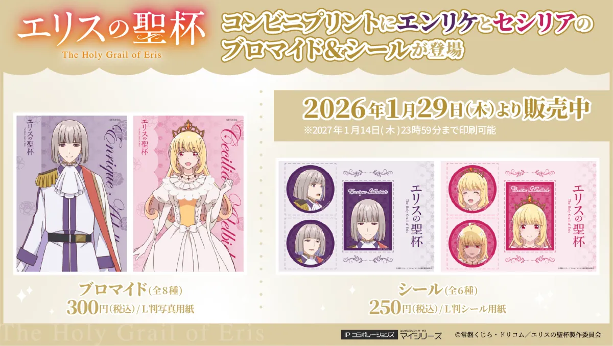 TVアニメ『エリスの聖杯』のコンビニプリントに、エンリケとセシリアの2人が新たに追加され、全6キャラクターのラインナップが揃いました。これにより、ファンの皆さまにとって嬉しいニュースが到来しています。既存のキャラクターたちに加え、新たな仲間が加わったことで、よりバリエーション豊かなアイテムが楽しめます。