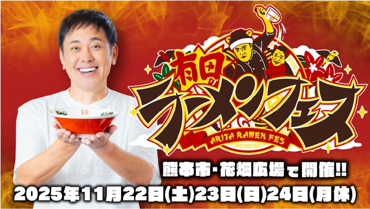 2025年11月22日から24日の3日間、熊本市の花畑広場で「有田ラーメンフェス」が初めて開催されます。日本有数のラーメンメディア「ラーメンWalker」との特別協力のもと、10店舗が集結し、ラーメン好きの皆さんに最高の味を提供します。このイベントは、人気お笑いコンビくりぃむしちゅーの冠番組である「くりぃむしちゅーの熊本どぎゃん⁉」の企画から生まれたもので、ラーメンを愛する有田さんの夢が形となりました。