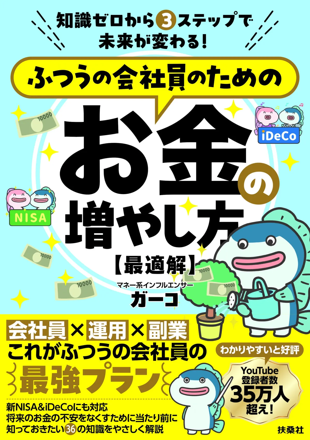 今年7月31日、 YouTube『ガーコちゃんねる』で名を馳せた著者ガーコが新書を発売します。この本は、知識がまったくない普通の会社員を対象に、お金を効率的に増やす手法を3つのステップで分かりやすく解説したものです。タイトルは『知識ゼロから3 ステップで未来が変わる!ふつうの会社員のためのお金の増やし方【最適解】』。資産運用や副業に必要な知識をシンプルに伝える内容になっています。