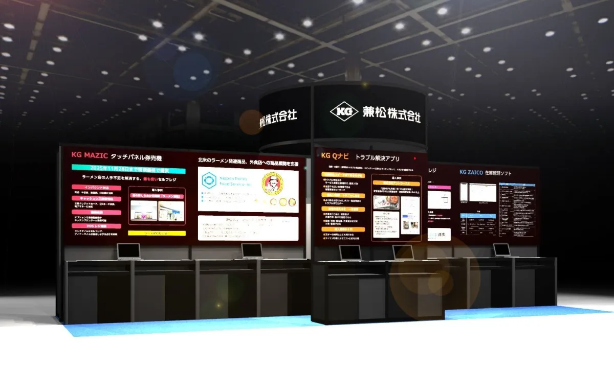兼松ブースでは、特に注目のソリューションとして、タッチパネル式の券売機『KG MAZIC』、タブレットPOSレジ『KG ユビレジ』、トラブル解決アプリ『KG Qナビ』、そして在庫管理サービス『KG ZAICO』が展示されます。これらの製品は、飲食店や外食産業の現場での運用効率を向上させることを目的としています。