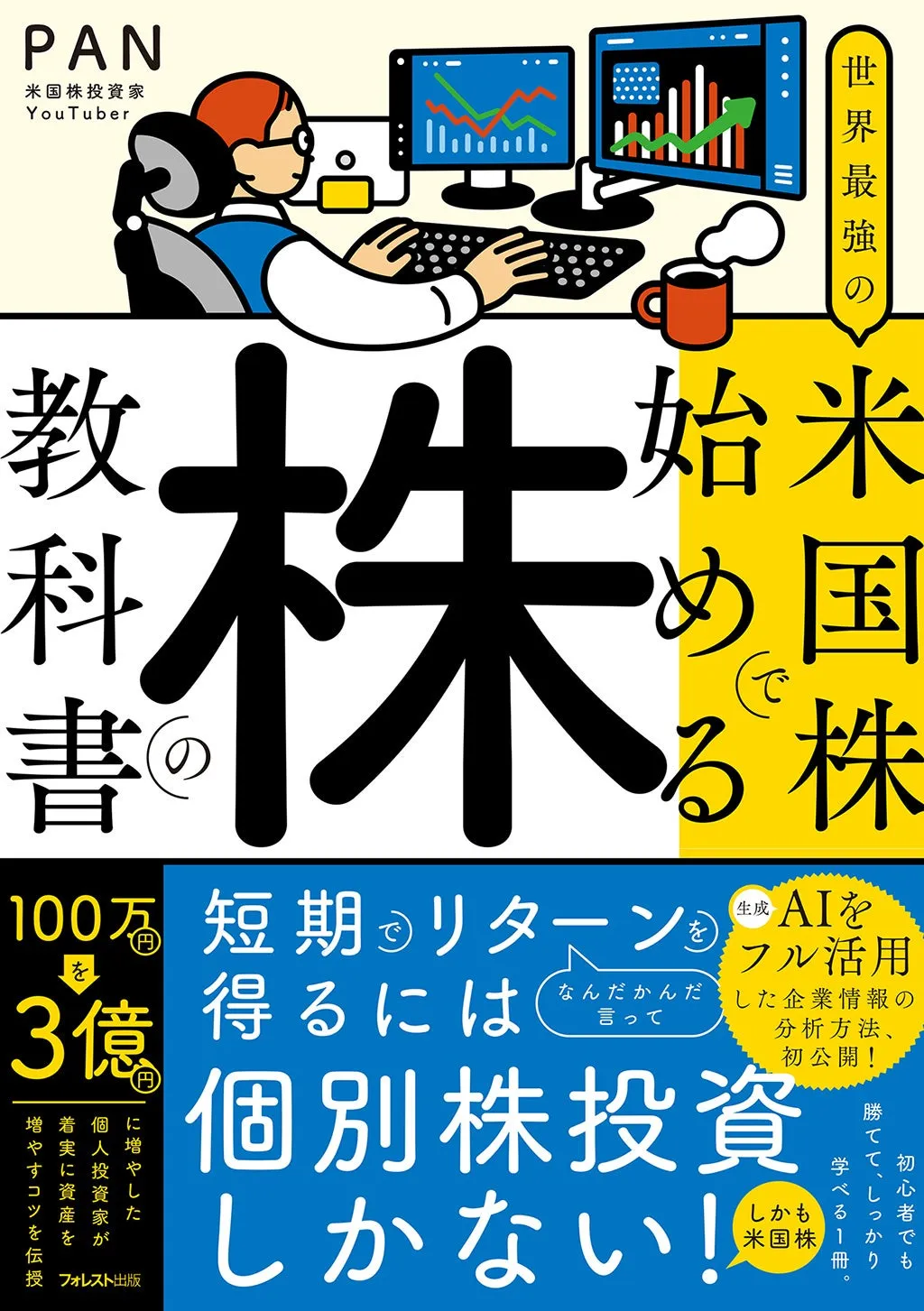 SNSで14万人以上のフォロワーを持つ米国株投資家、PAN氏がこの度初めての著書『世界最強の米国株で始める株の教科書』を2025年5月9日に出版します。PAN氏はYouTubeチャンネル「PAN米国株投資ちゃんねる」を運営し、米国株投資に関する豊富な知識と実績を身につけてきました。本書では彼の10年以上の経験を基に、マクロ経済、戦略、個別株、テクニカル分析までを網羅しています。
