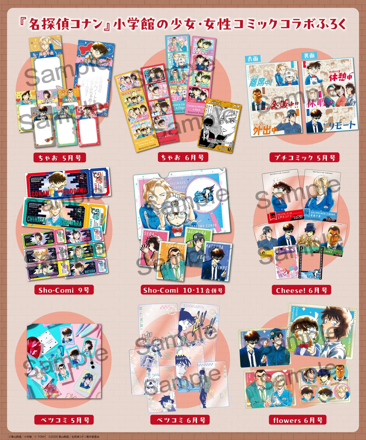 この春、少女・女性コミックで手に入る『名探偵コナン』のコラボ付録は、ファン必見の魅力が満載。劇場版公開前の盛り上がりを感じつつ、特別なアイテムを手に入れて、物語の世界をさらに楽しんでください!