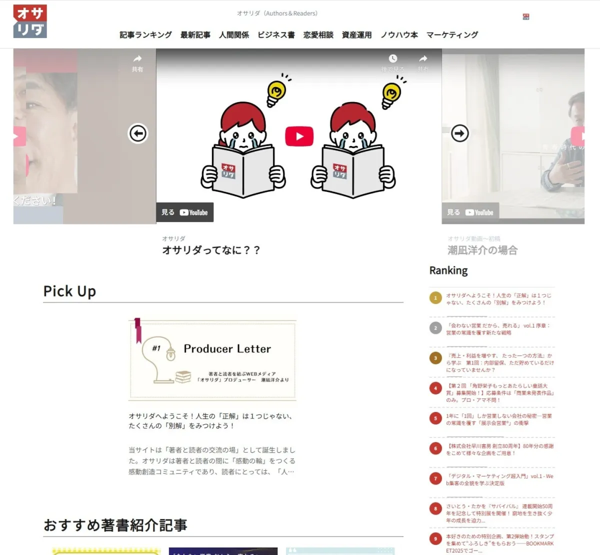 『オサリダ』の特徴として、まず挙げられるのが、多様な書籍紹介記事の提供です。これにより、読者が「今読むべき一冊」と出会うきっかけが生まれることを目指します。さらに、著者に関する情報を集約する専用ページも設けられ、ファンとの交流の場となります。